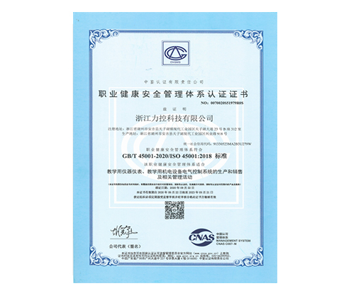 職業健康安全管理體系認證證書