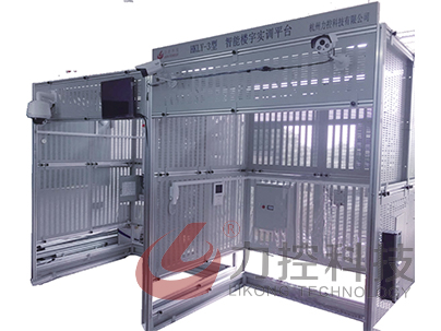 本系統是由鋼結構框架和木板搭建而成的二層建筑平臺,分別模擬一棟建筑的首層機房、二層住戶、首層樓道、二層樓道、垂直豎井和建筑周邊。房間提供正反側墻和頂墻的安裝范圍,同時還提供房間大門,可在上面安裝電插鎖、電磁鎖、門磁和閉門器等器件,并具有安裝模擬電梯功能。